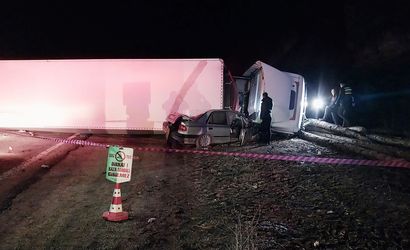 Kütahya'nın Gediz ilçesinde karşı şeride geçerek devrilen tırın altında kalan otomobilin sürücüsü öldü, babası yaralandı.