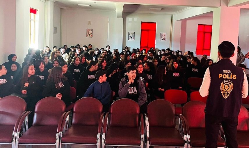 Kütahya İl Emniyet Müdürlüğü Siber Suçlarla Mücadele Şube Müdürlüğü'ne bağlı SİBERAY ekipleri, siber suçların önlenmesi ve toplumda farkındalık oluşturulması amacıyla eğitim çalışmalarını sürdürüyor. Bu kapsamda ekipler, Gediz Mustafa Necip Alayeli Anadolu Lisesi'nde öğrenci ve öğretmenlere yönelik bilgilendirici bir seminer düzenledi.