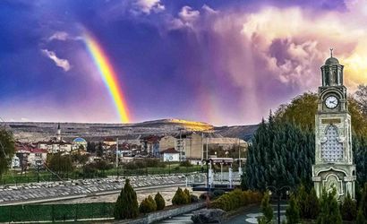 Kütahya Hisarcık'ta Saat Kulesi Üzerinde Gökkuşağı