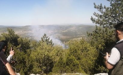 Kütahya'nın Emet ilçesinde, Düşecek köyü yakınlarındaki ormanlık alanda meydana gelen yangın, bölgedeki ekipler tarafından söndürülmeye çalışılıyor.