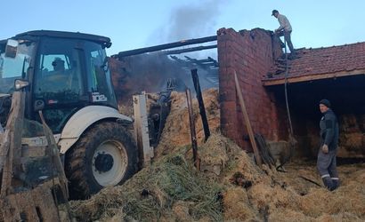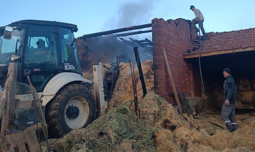 Kütahya Seyitömer'de ahır yangını itfaiye ekiplerince büyümeden söndürüldü