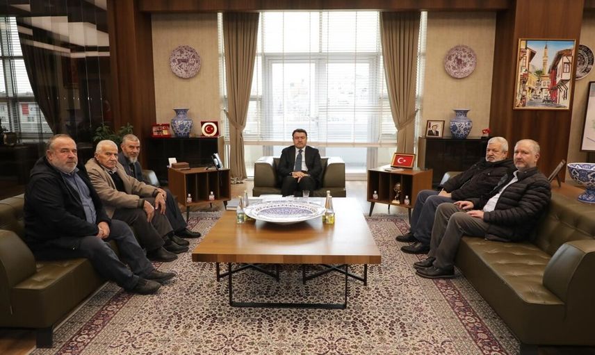 Kütahya Valisi Musa Işın, valilik makamında şehit babası Beytullah Kahraman ile Hüseyin Yılmaz, Ahmet Akyıldız, Sabahattin Özdemir ve Süleyman Çelik'i kabul etti.
