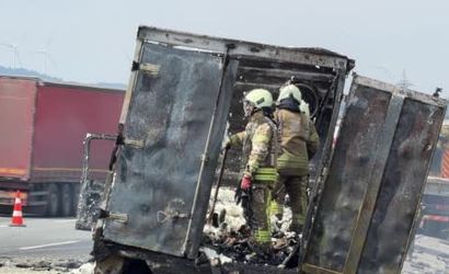 Kuzey Marmara Otoyolu'nun Çatalca istikametinde seyir halindeki bir tırda, henüz belirlenemeyen nedenle yangın çıktı. Olay yerine polis, itfaiye ve sağlık ekipleri sevk edildi ve ekiplerin müdahalesi devam ediyor.