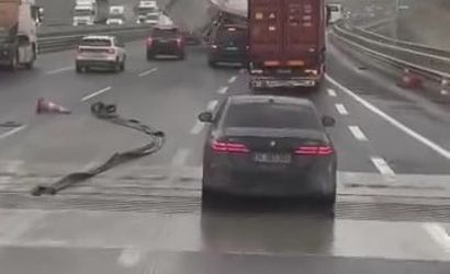 Özetle, Kuzey Marmara Otoyolu'nun Kocaeli Dilovası geçişinde gece etkili fırtına sonucunda iki tır ve bir kamyonetin devrilmesi ve olayın cep telefonu kamerasına yansıması; şans eseri yaralanma olmamasıyla kaydedildi.