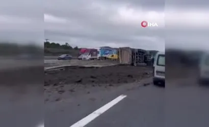 Kuzey Marmara Otoyolunda hafriyat kamyonu devrildi. Kaza sonrası bölgeye ekipler sevk edildi