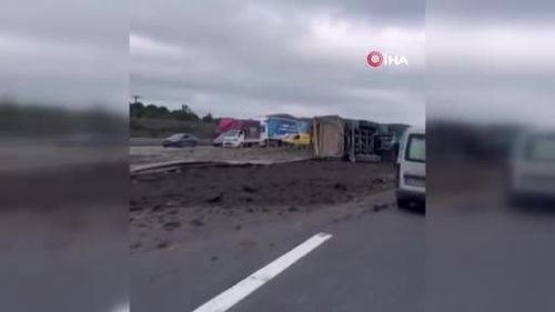 Kuzey Marmara Otoyolu'nda hafriyat kamyonu devrilmesi sonucu bölgeye ekipler sevk edildi.