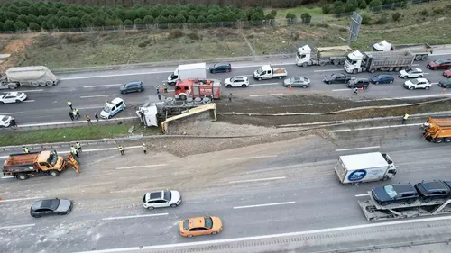 Kuzey Marmara Otoyolu'nda hafriyat kamyonu yan yattı, çok sayıda şerit trafiğe kapandı
