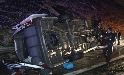 Kuzey Marmara Otoyolu'nda kar nedeniyle servis aracı devrildi: 11 kişi hafif yaralandı