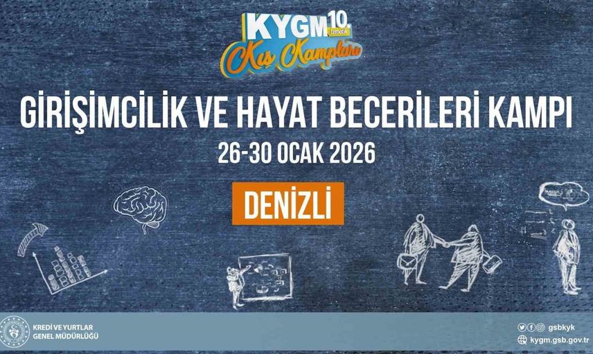 Gençlik ve Spor Bakanlığı'na bağlı Kredi ve Yurtlar Genel Müdürlüğü (KYGM), yurtlarda kalan üniversite öğrencilerinin kişisel ve sosyal becerilerini geliştirmeyi amaçlayan tematik kış kamplarının bu yıl onuncusunu gerçekleştiriyor. Girişimcilik ve Hayat Becerileri Kampı, 26-30 Ocak 2026 tarihleri arasında Denizli'de düzenlenecek.