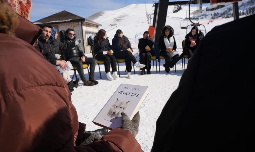 Samsun'un Ladik ilçesindeki 2 bin rakımlı Akdağ Kayak Merkezi'nde kar üzerinde kitap okuma etkinliği düzenlendi.
