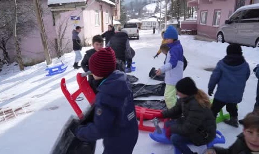 Ortaya çıkan renkli görüntüler, kızaklarla kayan çocukların neşeli anlarını gözler önüne serdi. Çocukların eğlenceli anları kameralara yansırken, mahalledeki büyükler de onları izleyerek keyifli anlara ortak oldu.