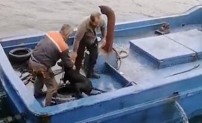 Olay yerine gelen Yılmazlar-5 teknesinin ekipleri, köpeğe yaklaşmak için teknenin yardımcı botunu kullandı. Balıkçılar, halat yardımıyla köpeğe erişip birlikte çalışarak hayvanı denizden çıkardı.