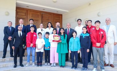 Türkiye'nin Lefkoşa Büyükelçisi Ali Murat Başçeri, Türkiye Maarif Vakfı Başkanı Mahmut Özdil ile beraberindeki öğrencileri kabul etti.