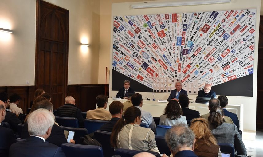 İtalyan savunma sanayi şirketi Leonardo ile Alman savunma sanayi şirketi Rheinmetall, Avrupa’da askeri muharebe araçlarının geliştirilmesi ve üretimi için ortak bir girişim kurma kararı aldıklarını bildirdi. Rheinmetall Üst Yöneticisi (CEO) Armin Papperger (solda) ve Leonardo Üst Yöneticisi (CEO) Roberto Cingolani (sağda), bu kararlarına ilişkin Roma'daki Yabancı Basın Derneği'nde ortak bir basın toplantısı düzenledi.