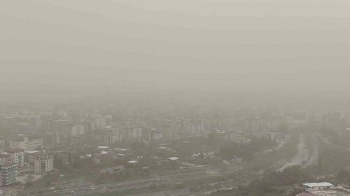Libya üzerinden gelen çöl tozu Hatay'ın Antakya ilçesinde etkili oldu; havadan çekilen görüntüler toz bulutunu ve görüş mesafesinin 150 metreye düştüğünü gösterdi.