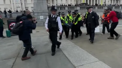Londra'daki Trafalgar Meydanı protestosunda İngiltere polisi müdahale etti; yerel saate göre 16.50 itibarıyla 212 kişi gözaltına alındı, sayının artması bekleniyor.