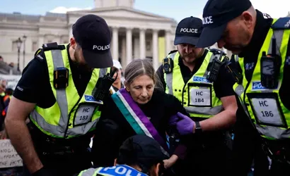 İngiltere'nin başkenti Londra'da dün Trafalgar Meydanı'nda düzenlenen destek gösterilerinde, polis müdahalesi sonucu gözaltına alınanların sayısı 523'e yükseldi. Polis açıklamasına göre gözaltına alınanların yaşları 18 ile 87 arasında değişiyor.