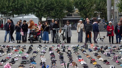 Maastricht'te Sint Servaas Bazilikası önünde, Gazze'de İsrail saldırılarında yaşamını yitiren Filistinli çocuklar ve gazeteciler için anma etkinliği düzenlendi.