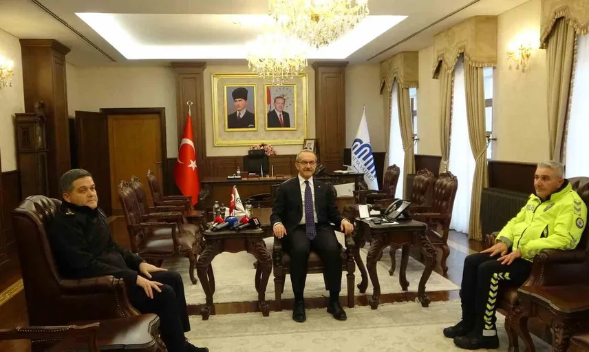 Maç sırasında çocuğun üşüdüğünü fark eden Yiğit’in duyarlı davranışı kamuoyunda takdir topladı. Vali Yavuz ile birlikte İl Emniyet Müdürü Kayhan Ay da polis memurunu makamında kabul ederek belge takdim etti.