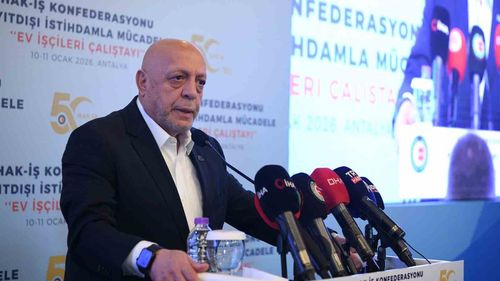 HAK-İŞ Genel Başkanı Mahmut Arslan, Antalya çalıştayında ev işçilerinin İş Kanunu kapsamına alınması, kayıt dışılığın kaldırılması ve toplu sözleşme hedeflerini açıkladı.