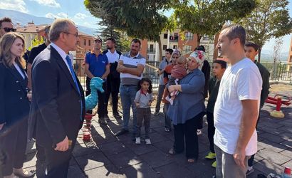 Malatya Valisi Seddar Yavuz (solda), Kale ilçesinde saat 10.46'da meydana gelen 5,9 büyüklüğündeki depremin ardından ilçede saha çalışmalarını inceleyip vatandaşlara geçmiş olsun dileklerini iletti.