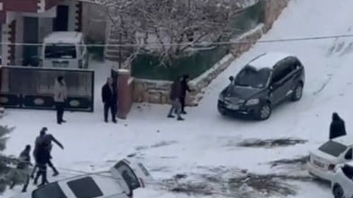 Malatya'da Göknar Sokak'ta kar ve buzlanma nedeniyle kayan bir araç, saat 08.30'da park halindeki aracı devirdi; olay cep telefonu kamerasına yansıdı.