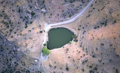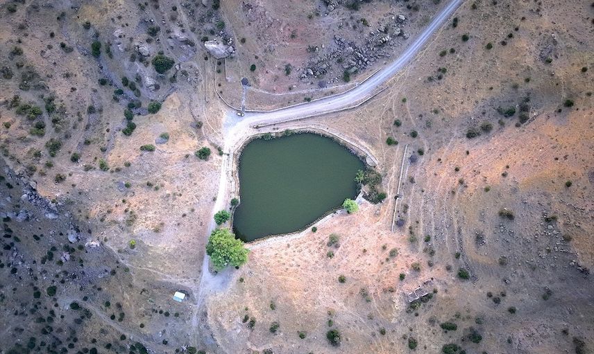 Malatya'nın Hekimhan ilçesindeki Başkınık Mahallesi sınırlarındaki Dipsiz Göl, gün batımında dronla görüntülendi.