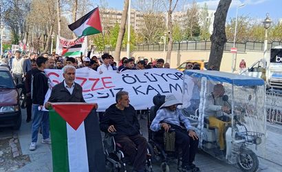 Yürüyüş boyunca katılımcılar, İsrail'e tepkilerin yer aldığı pankartlar taşıdı. Basın açıklamasını okuyan Turgut Özal Aksüt, Gazze'nin anavatanın kalbi olduğunu belirtti. Aksüt, "Bugün kalbimiz bombalanıyor, susturuluyor. Ama biz bu sessizliğe razı değiliz. Biz susmayacağız çünkü biz biliyoruz ki bir çocuğun çığlığı, bir annenin gözyaşı bir ümmetin vicdanını sarsmaya yeter. Ey ümmet, artık suskunluğunuzu bozun. Dua yetmez, direniş gerekir. Gözyaşı yetmez, ayağa kalkmak gerekir." diye konuştu.