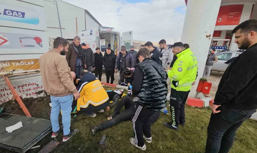 KONTROLDEN ÇIKAN HAFİF TİCARİ ARAÇ AKARYAKIT İSTASYONUNA DALDI: 2 YARALI