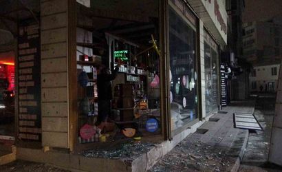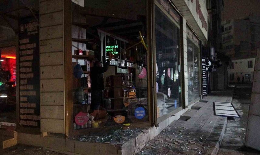 Malatya'da hafriyat kamyonunun lastiğinin patlaması sonucu Akpınar Mahallesi'ndeki bir iş yerinin camları zarar gördü.