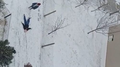 Malatya'da sabaha karşı başlayan kar yağışı nedeniyle eğitime 1 gün ara verildi; çocuklar Akçadağ Aktepe Mahallesi'nde naylon poşet ve tahtalarla kar keyfi yaşadı.