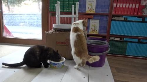 Malatya'da konteynerde sahaflık yapan Cihan Dede sokak kedilerine barınma sağlıyor
