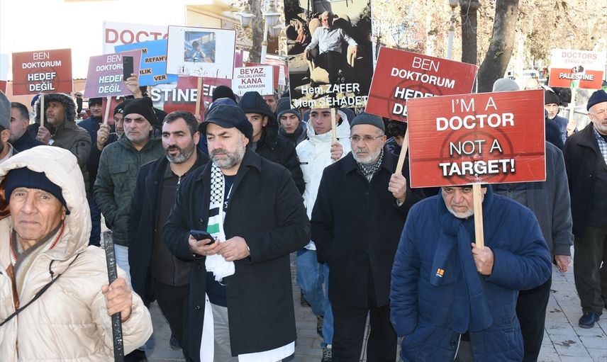 Malatya'da sağlık çalışanları, düzenledikleri yürüyüşle İsrail'in Filistin'e yönelik saldırılarını protesto etti.