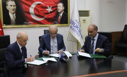 Malatya'da Kahramanmaraş merkezli 6 Şubat 2023'te meydana gelen depremlerde hasar aldıktan sonra yıkılan ve temeli atılan Söğütlü Cami'nin yapı denetim işini Büyükşehir Belediyesi yapacak. Söğütlü Cami'nin yapı denetimini Büyükşehir Belediyesinin yapması amacıyla hazırlanan protokol, Malatya Büyükşehir Belediyesinde, Büyükşehir Belediye Başkanı Sami Er (ortada), İl Müftüsü Ramazan Dolu (sağda) ve caminin yapımını üstlenen hayırsever Bayram Kızılaslan (solda) tarafından imzalandı.