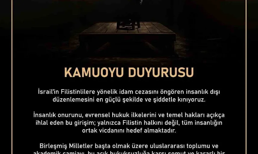 Rektörlük açıklamasında söz konusu düzenlemenin temel insan hakları, yaşam hakkı ve evrensel hukuk ilkeleri açısından son derece kaygı verici bulunduğu belirtildi. Açıklamada şu ifadeler yer aldı: "Üniversitemiz, İsrail Parlamentosu tarafından kabul edilen ve Filistinli tutuklulara yönelik idam cezasını içeren düzenlemeyi; temel insan hakları, yaşam hakkı ve evrensel hukuk ilkeleri açısından son derece kaygı verici bulmaktadır. Söz konusu düzenlemenin, insan haklarıyla bağdaşmadığı ve uluslararası hukuk normlarıyla çeliştiği değerlendirilmektedir. Uzun süredir devam eden çatışma ortamı, bölgede yaşayan siviller üzerinde ciddi insani etkiler doğurmuş; özellikle temel hak ve özgürlüklerin ihlali konusunda uluslararası kamuoyunda derin endişelere yol açmıştır. Bu çerçevede, hukuki düzenlemelerin insan haklarını koruma amacı taşıması gerekirken, aksine sonuçlar doğurabilecek adımların atılması kabul edilemez niteliktedir."