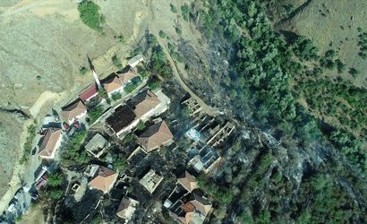 Malatya'nın Kale ilçesinde otluk alanda çıkan ve 2 evin kullanılamaz hale gelmesine neden olan yangın kontrol altına alındı. Yangın sonrası oluşan hasar dronla görüntülendi.