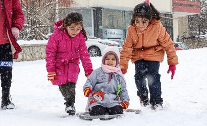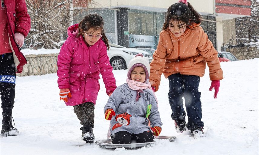 Malatya'nın Darende ilçesinde kar etkili oldu. Kar yağışını fırsat bilen çocuklar, sokaklara çıkarak kartopu oynadı, kızak kayarak eğlendi.