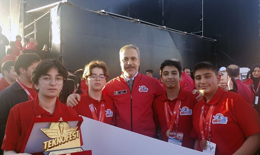 Malatyalı öğrenciler, katıldıkları TEKNOFEST KKTC'de turizm teknolojileri alanında hazırladıkları projeyle birinci oldu. Dışişleri Bakanı Hakan Fidan, Malatya Deneyap Atölyesi takımını tebrik ederek, hatıra fotoğrafı çektirdi.