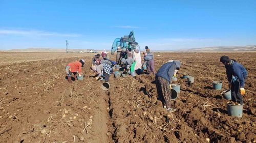 Muş'un Malazgirt ilçesi Hasanpaşa köyünde ilk kez ekilen patatesten yüksek verim alındı; 100 dönümlük alanda 20 kişilik ekiple hasat yapıldı.