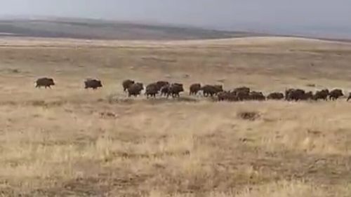 Malazgirt'te Nurettin köyü civarında büyük yaban domuzu sürüsü görüntülendi
