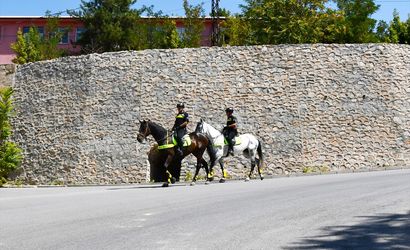 Ankara'dan gelen Atlı Polis Birliği, Bitlis'in Ahlat ilçesinde düzenlenecek Malazgirt Zaferi'nin 954. yıl dönümü etkinlikleri kapsamında il merkezinde devriye görevi yaptı. Gökmeydan'dan tarihi çarşı güzergahına kadar süren devriyede vatandaşlar atlı polisleri ilgiyle izledi.