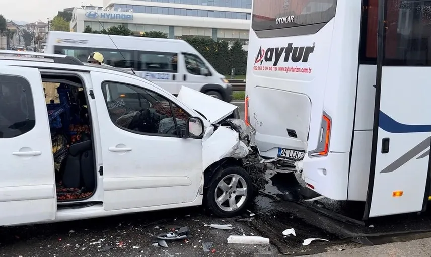 Maltepe'de hafif ticari araç servis minibüsüne arkadan çarptı: Sürücü yaralandı