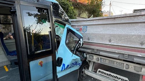 Maltepe'de meydana gelen kazada yolcu minibüsü, park halindeki tıra çarptı, 8 kişi yaralandı.