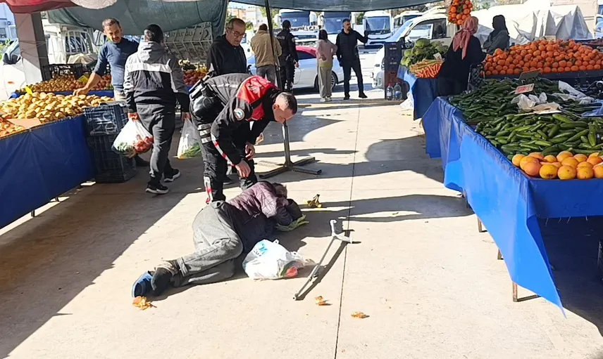 Görgü tanıklarının bildirdiğine göre, şahsın elinde pazar malzemeleri bulunuyordu ve montunun içinde bir alkol şişesi olduğu tespit edildi. Polis ve sağlık ekipleri, şahsı sedye ile ambulansa alarak Manavgat Devlet Hastanesi'ne sevk etti.