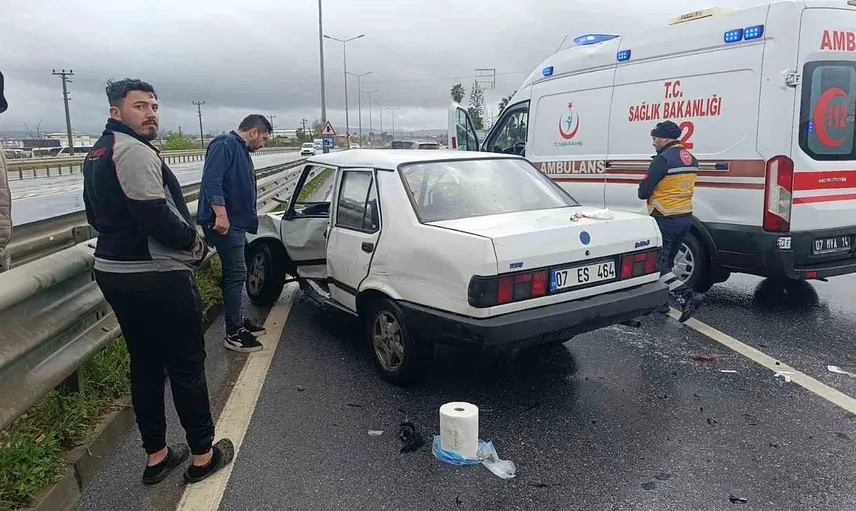 Kaza, D-400 Karayolu Sanayi Köprülü Kavşağı'nda kaydedildi. Antalya istikametinden Alanya yönüne seyir halinde olan 07 BMT 115 plakalı Mercedes marka tur minibüsünü kullanan Mutlu Y. ile kavşakta aniden önüne çıkan ve ters yönde hareket eden 07 ES 464 plakalı Tofaş marka otomobilin sürücüsü Mehmet Ali T. arasında çarpışma yaşandı.