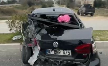 Manavgat'ta D-400 kara yolunda emniyet şeridindeki araca çarpma: 2 yaralı