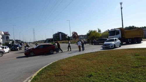 Manavgat'ta kavşakta iki otomobil çarpıştı; güvenlik kamerası kaydetti