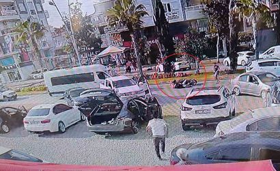 Kaza anı güvenlik kamerasına saniye saniye yansırken, motosiklet sürücüsü Mustafa D.A. ile yolcu olarak bulunan Seher A. yola savrularak yaralandı.