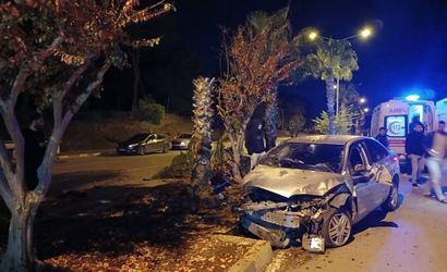 Antalya'nın Manavgat ilçesinde, Sarılar Mahallesi Hastane Caddesi üzerinde seyir halindeyken kontrolden çıkan bir otomobil refüjdeki palmiyeye çarptı.
