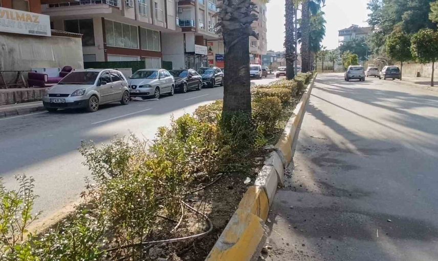 Manavgat'ta virajı alamayan otomobil orta refüjdeki palmiye ağacına çarptı